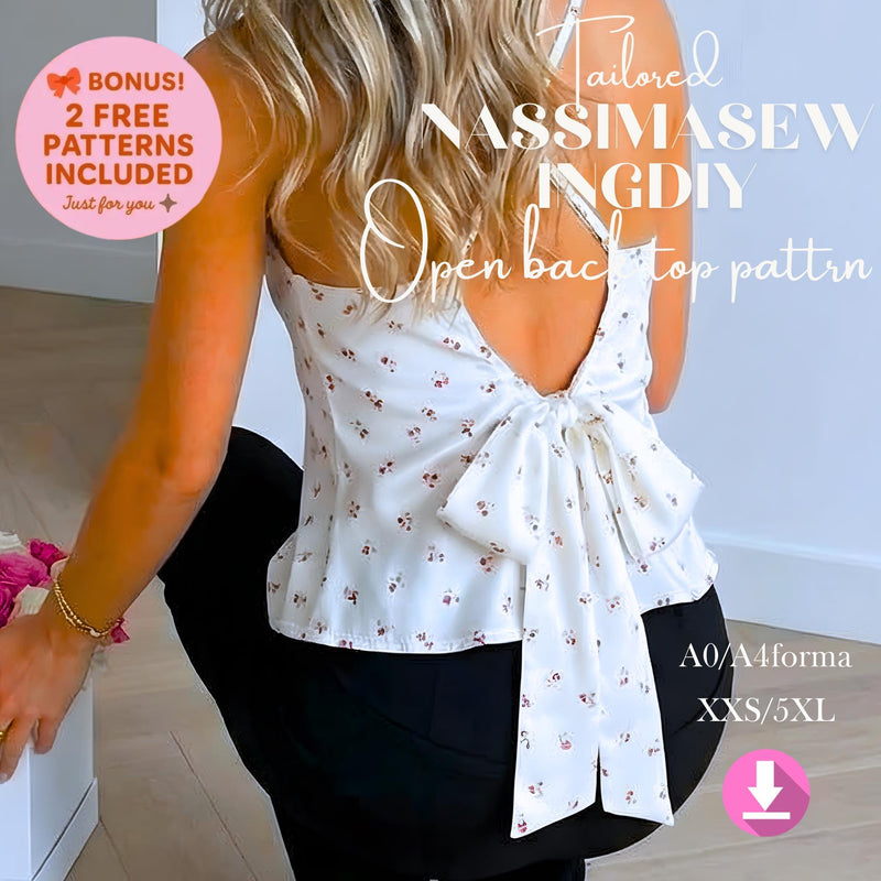 Open Back Top Sewing Pattern PDF XXS-5XL, Bow Back Pattern, Spaghetti Strap Top Pattern, Women Blouse Sewing Pattern,A4 A0 Printable